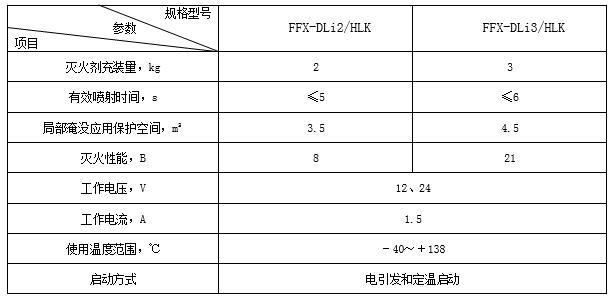 車(chē)用鋰電池箱D類(lèi)干粉自動(dòng)滅火裝置主要技術(shù)參數(shù)