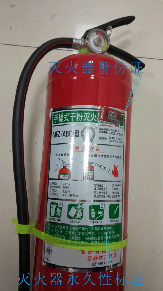 1、干粉滅火器瓶體法定報廢年限為10年:可通過壓力表上出廠日期或瓶體有無身份證判定滅火器瓶體出廠日期(自2008年1月1日起,防火門、滅火器、消防應急燈三類產(chǎn)品全面實行消防產(chǎn)品身份證制度)(如下圖);