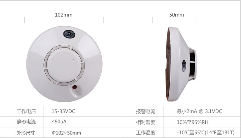 頂部的3C認證標志很是顯眼,一下子就能讓人知道這個產(chǎn)品的質(zhì)量經(jīng)得起考驗。同樣顯眼還有報警LED燈,在報警的時候會保持常亮,易于發(fā)現(xiàn),提醒人們該探測器處于工作狀態(tài)。