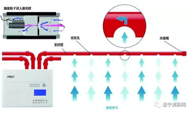其工作原理在于通過(guò)分布在被保護(hù)區(qū)域內(nèi)的采集管網(wǎng)采集空氣樣品,經(jīng)過(guò)一個(gè)特殊的過(guò)濾裝置濾掉灰塵后送至一個(gè)特制激光探測(cè)器。空氣樣品在探測(cè)器中經(jīng)過(guò)分析,將空氣中燃燒產(chǎn)生的微粒加以測(cè)定,由此給出準(zhǔn)確的煙霧濃度值,并根據(jù)使用者事先設(shè)定的報(bào)警煙霧濃度值發(fā)出火災(zāi)報(bào)警。而此次全新上市的FMST-FXV(E)系列則在技術(shù)性能上全面升級(jí)。
